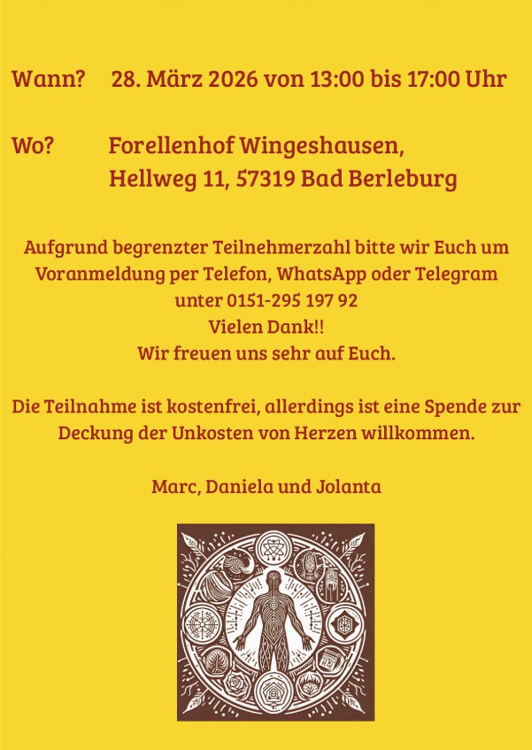 Eine Reaktivierung bzw. Balancierung der Aura-, Chakra- und Meridianenergien haben immensen Einfluß auf unser Wohlbefinden, unsere Selbstheilungskräfte und können Deinen Entwicklungsprozess zu einem bewussteren Selbst anstoßen. Die energetische Unterstützung bei chronischen Erkrankungen und schulmedizinischen Langzeittherapien zeigen wunderbare Erfolge.